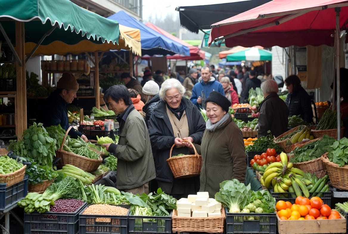 people happily shopping, evoking the joy of transitioning to a vegan lifestyle.